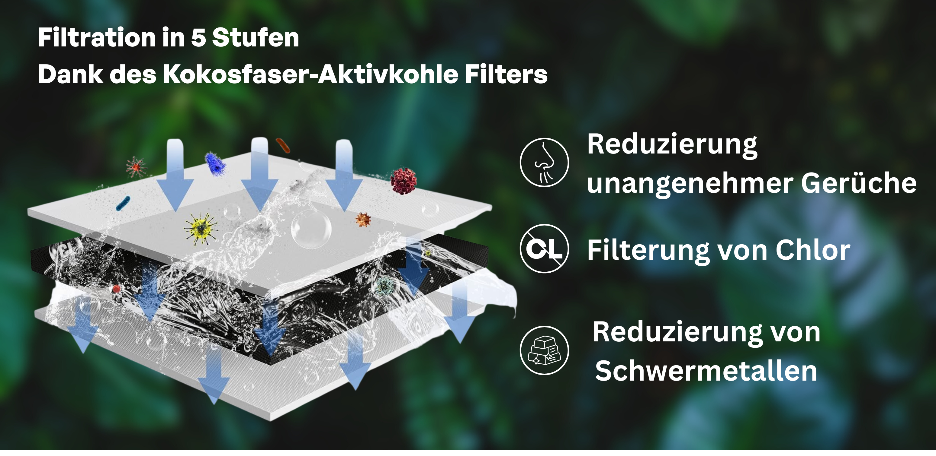 Der Filter ist deine zusätzliche Sicherheitsebene - für das beruhigende Gefühl, dass du und deine Familie wirklich sauberes, gefiltertes Wasser trinken.
